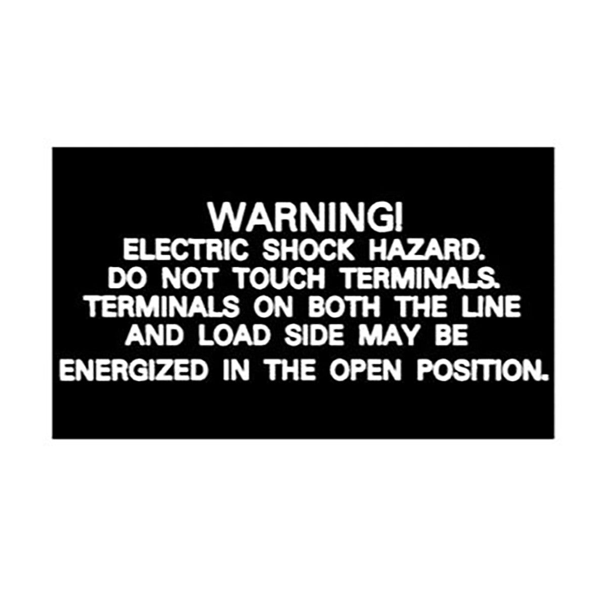WARNING! ELECTRIC SHOCK HAZARD. DO NOT TOUCH TERMINALS. TERMINALS ON BOTH THE LINE AND LOAD SIDE MAY BE ENERGIZED IN THE OPEN POSITION